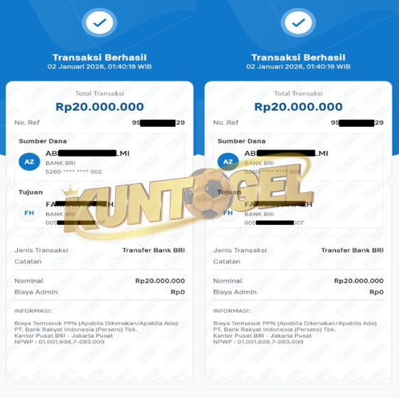 BUKTI TRANSFER JACKPOT KUNTOGEL