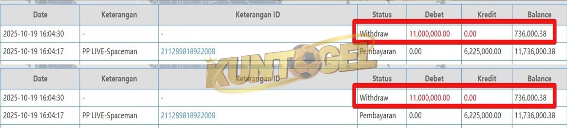 BUKTI TRANSFER JACKPOT KUNTOGEL